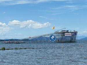 サークルは『航空研究会』と言う場所に所属しており、毎年7月に琵琶湖で開催されている鳥人間コンテストに向けて人力飛行機を製作しています。2025年度の大会は403.43mの飛行記録を残すことが出来、滑空機で3位を受賞することができました。