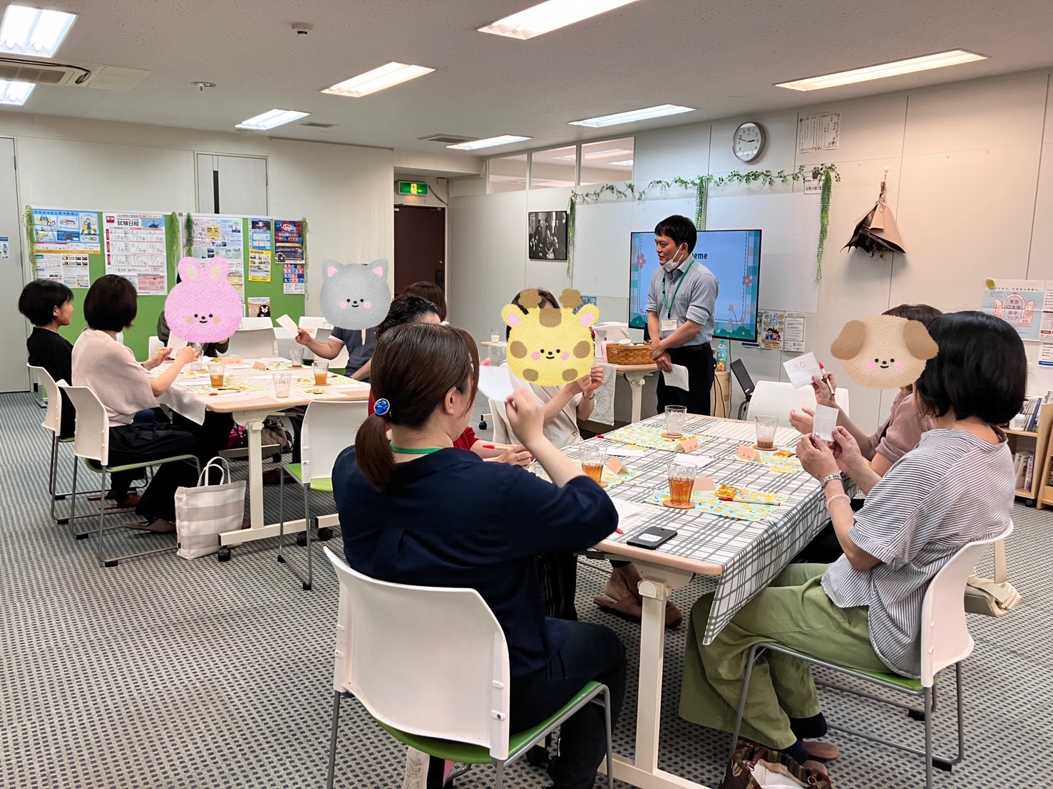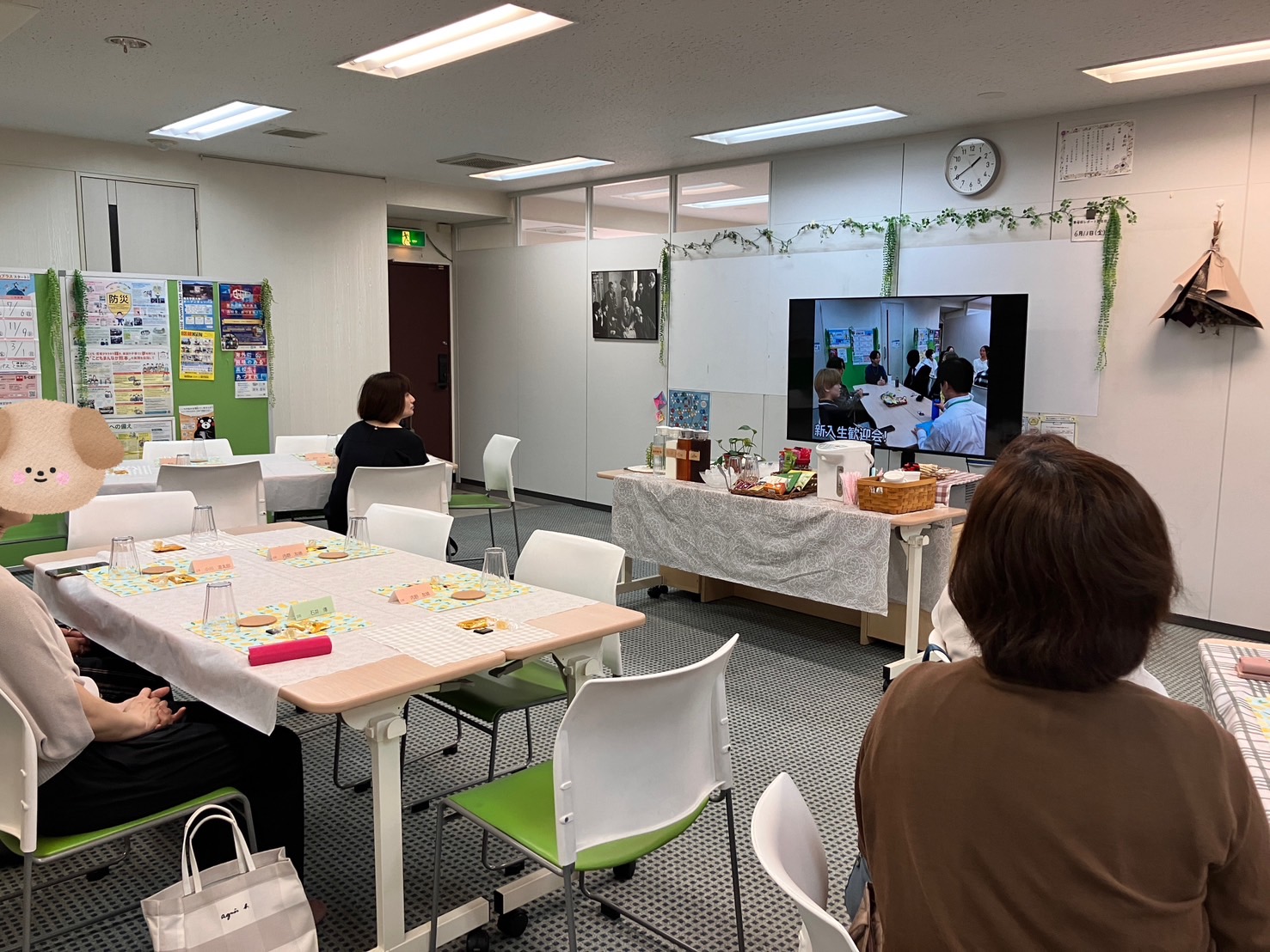 茶話会でも、西カフェと同様トークテーマを設けてそれぞれのテーブルに職員が入り会話を弾ませていきます。