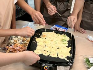 たこ焼きパーティしたり、かき氷で涼みながら交流したり、