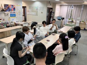 さっそくみんなで机を囲んで、最近ブームのウノフリップに興じていました