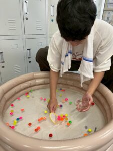 スーパーボールすくいでは、すぐにポイに貼った紙が破れてしまう生徒もいれば