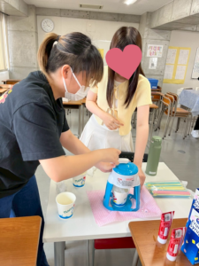 生徒たちはかき氷機を回すのを楽しんでいたようでガリガリ系が人気でした(笑)
