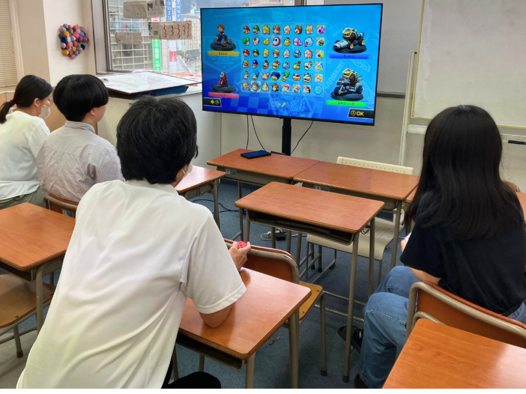 さらに、キャンパス内のモニター(Google TV)を活用してマリオカート大会も開かれ、その後は桃太郎電鉄(桃鉄)を楽しむという、雨の日ならではの交流の一日となりました。