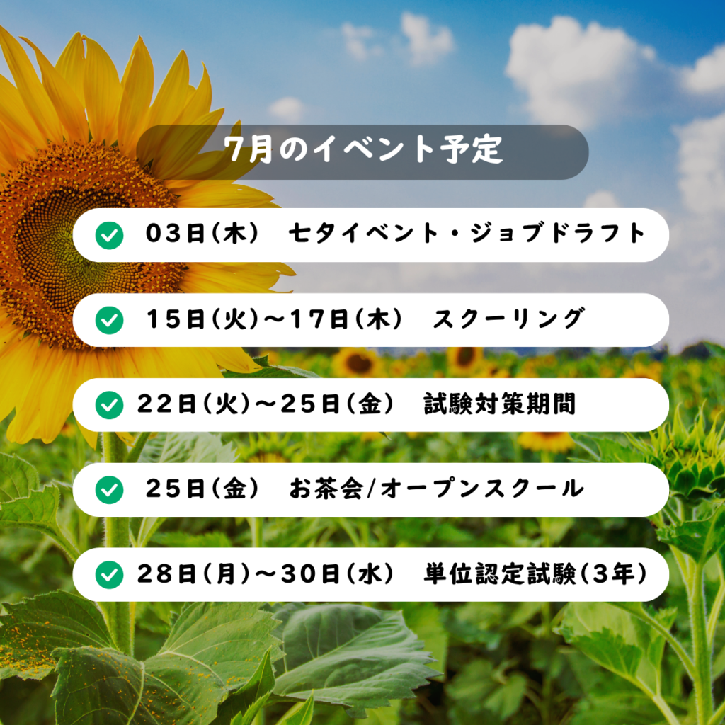 7月は行事も学習も大切な機会が目白押しの1か月です。