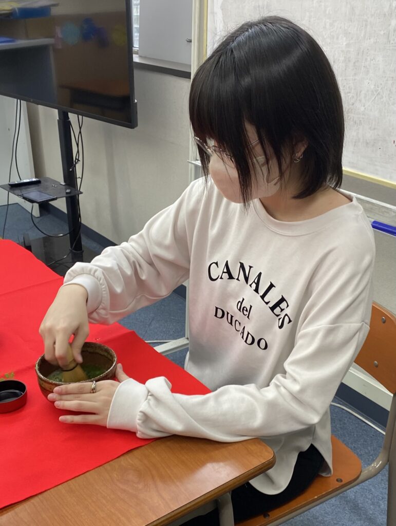 今回は初めてお茶を点てる生徒もいましたが、みんな興味を持って自らお茶点てをしたいと寄って来てくれました。