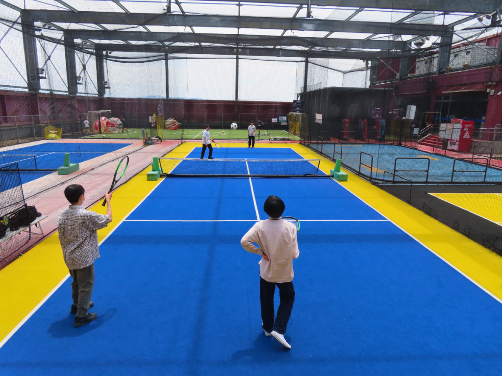 バスケットボール🏀やバドミントン🏸、フットサル⚽、ローラースケート、卓球🏓、テニス🎾、カラオケ🎤、アーケードゲーム🎮など、広い施設内のアクティビティを自由に回りながら、それぞれが思い思いの過ごし方を楽しんでいました。