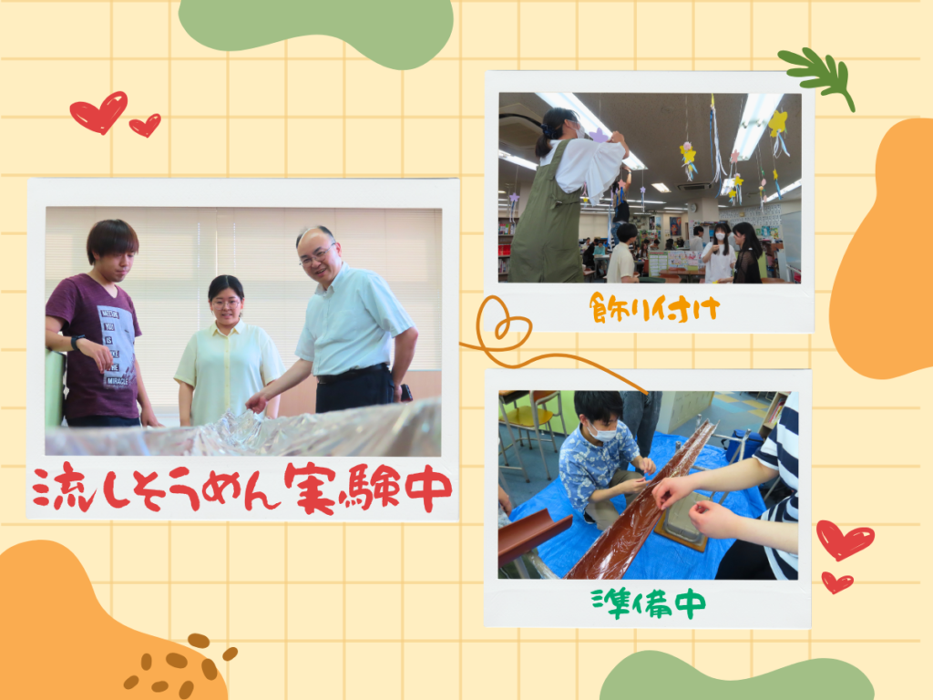 たこ焼き、七夕ゼリー、そして今回の目玉企画流しそうめんの準備に大忙し。