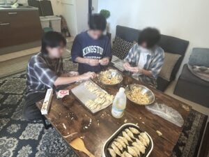 料理が得意な生徒が率先して動いたり、餃子を包むのが初めての生徒に丁寧に教えてあげたりと、自然に助け合う空気感がとても素敵でした。