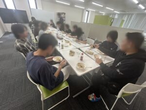 完成した料理を囲んで、「めっちゃ美味しい!」「自分たちで作ったから達成感あるね!」と笑顔がこぼれていました。