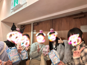 服装や髪形を事前に決めている生徒も多く、遠足前から楽しんでいるのが印象的でした。当日はカチューシャを付けて、ポシェットを買って、キャラクターになりきり、たくさん写真を撮っていました!楽しんでいるのが伝わって、こっちまで楽しい気持ちになれました♡