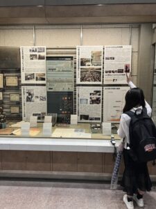 古い帳簿や取引の道具、当時の新聞記事などが展示されており、「昔の人も、こうやって経済を動かしていたんだな」と、生徒たちは興味津々。過去の経済がどのように動いていたのか、人々がどのような思いで投資を行っていたのかを垣間見ることができました。