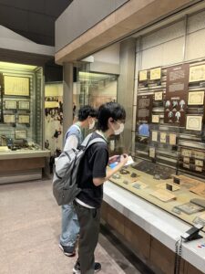 古い帳簿や取引の道具、当時の新聞記事などが展示されており、「昔の人も、こうやって経済を動かしていたんだな」と、生徒たちは興味津々。過去の経済がどのように動いていたのか、人々がどのような思いで投資を行っていたのかを垣間見ることができました。