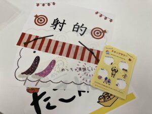 射的やチョコバナナ、たこ焼き、お菓子釣り