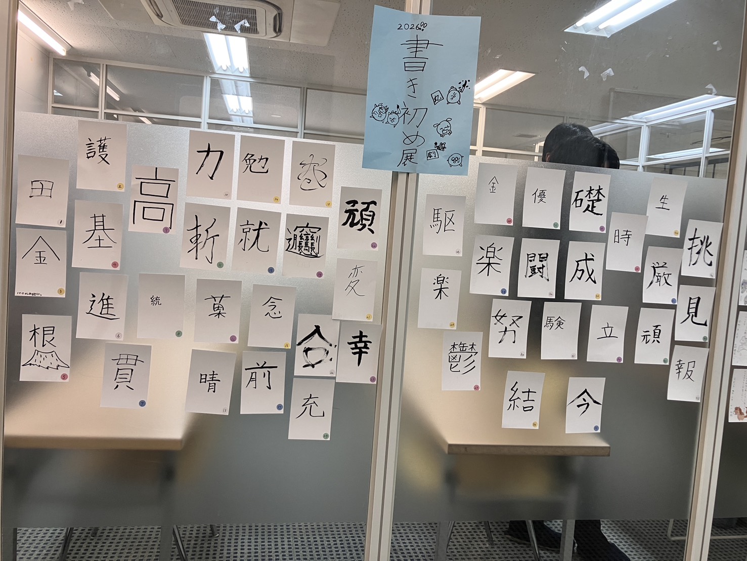 完成した書初めはキャンパス内に掲示し、