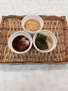 定番の「きなこ」に、あまじょっぱい「砂糖醤油」に磯の香りがたまらない「海苔」で「磯辺巻き」、デザート担当「ぜんざい」など、バリエーション豊かな味を楽しみました。つきたてのお餅はやっぱり格別ですね!🍡