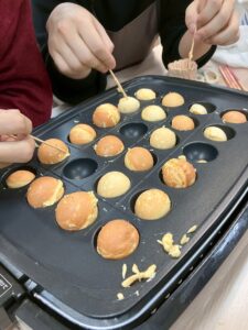 さらに午後の授業で高校生たちがベビーカステラ作りに挑戦!🐙🔥