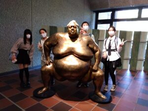 遠くにいる生徒が見えますか?実際のガンダムの大きさです。大きい!