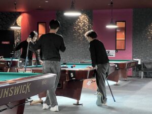 少し落ち着いた雰囲気のエリアでは、ビリヤードが人気でした。 「ルールがわからない!」という初心者も、説明書を見ながらチャレンジ。 狙いすまして手玉を突き、狙ったポケットにボールが吸い込まれた瞬間は、「おおお〜!」と自然に拍手が沸き起こっていました。