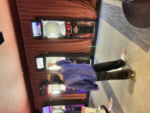 最後は、大盛り上がりだったダーツコーナーです。 狙うは中心の「ブル」! 最初はボードに刺さらず苦戦していた生徒も、コツを掴むと高得点を連発。 「あと1点…!」「入ったー!」と、白熱しました!