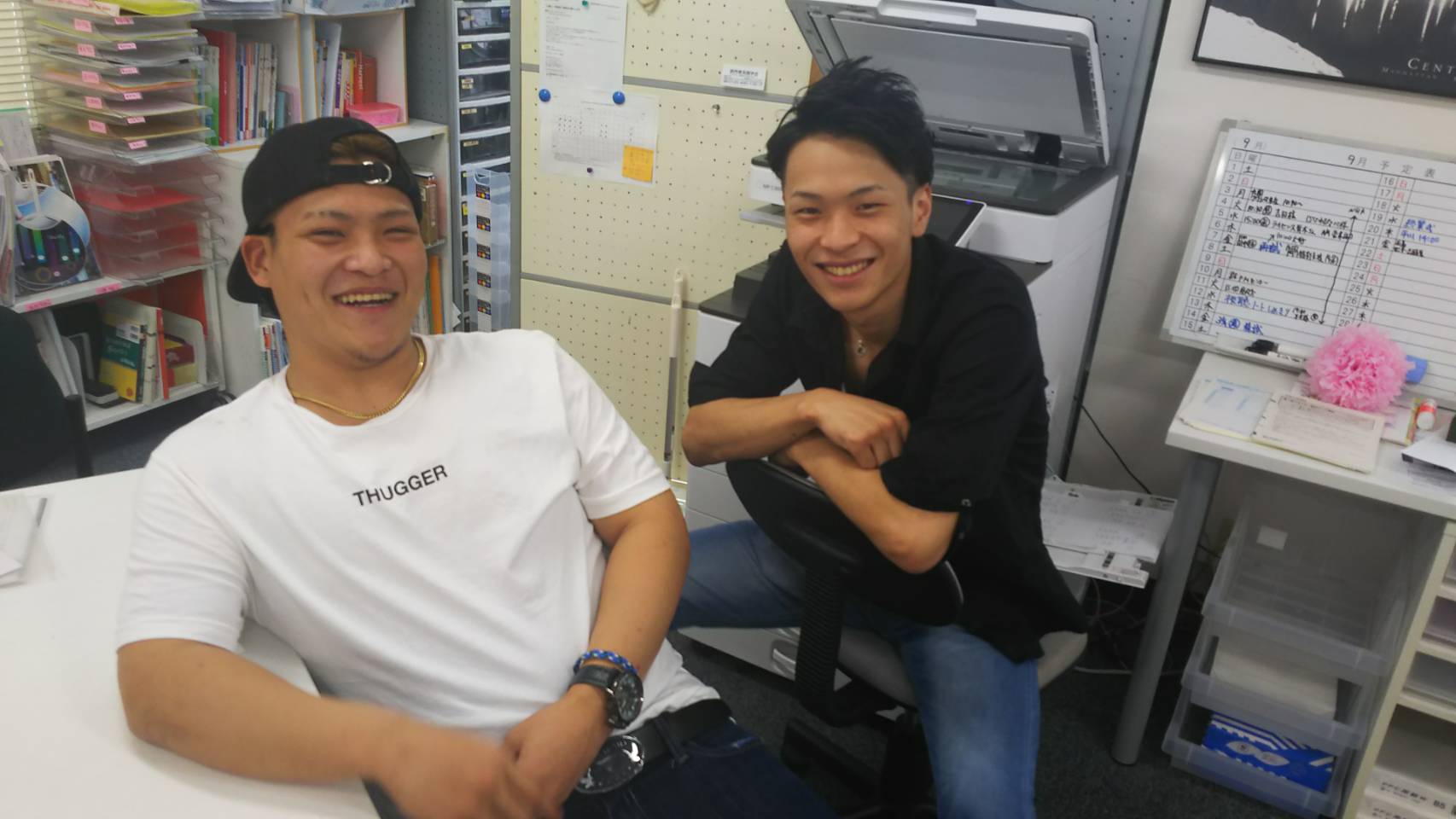 そんな空・教室模様の雰囲気が漂っていましたが、2人の卒業生がその空気を変えてくれました。3月に卒業し、4月から就職してがんばっているSくんとKくんです。