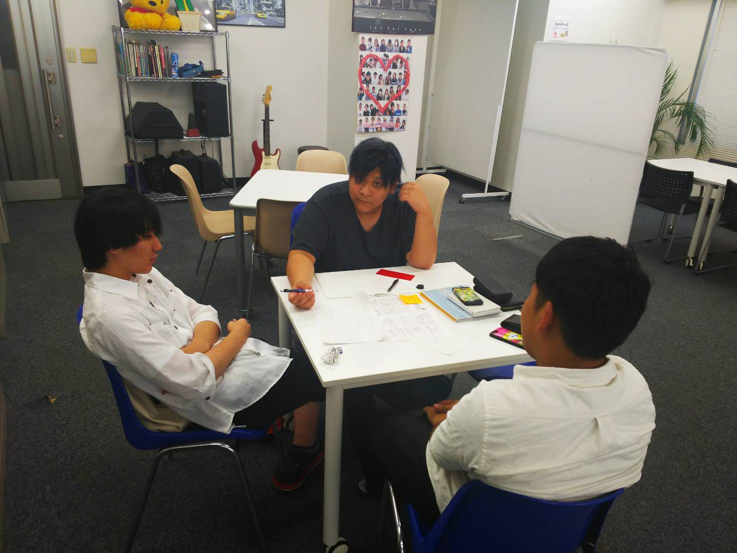 さて、キャンパスはと言うと、秋休み末日、という割には意外とにぎやかです。午前中も午後も、キャンパスに何人かの生徒が顔を出しにやってきてくれました。進学コースのこの3人組のうち、YくんがKくんに数学を教えています。