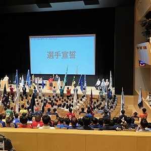 途中の駅で、同じく全国大会に参加するであろう他の高校も見かけましたが、いざ開会式の会場に入ると、熱気がすごい。(室内ホールなのでクーラーは効いています。)