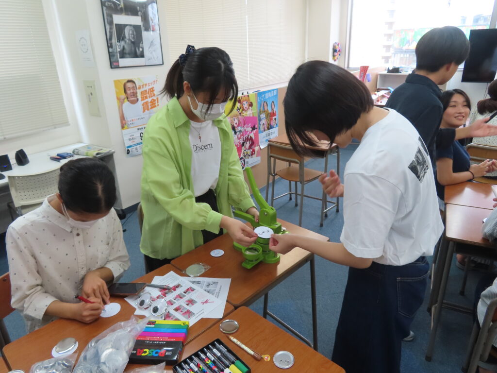 当日はお茶会を楽しめるだけでなく、以前のオープンスクールで好評だった「缶バッジづくり」も行う予定です!自由にイラストを描いて、自分だけのオリジナル缶バッジを作ることができます。前回、缶バッジづくりを実施したときの様子はこちらです😊